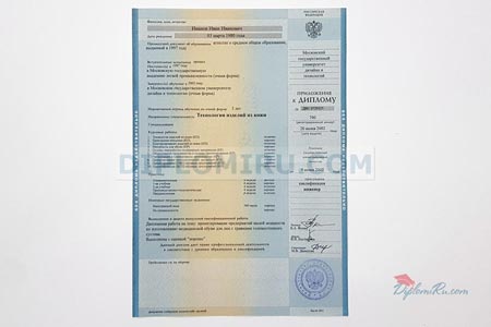 Приложение к диплому ВУЗа, ССУЗа, ПТУ