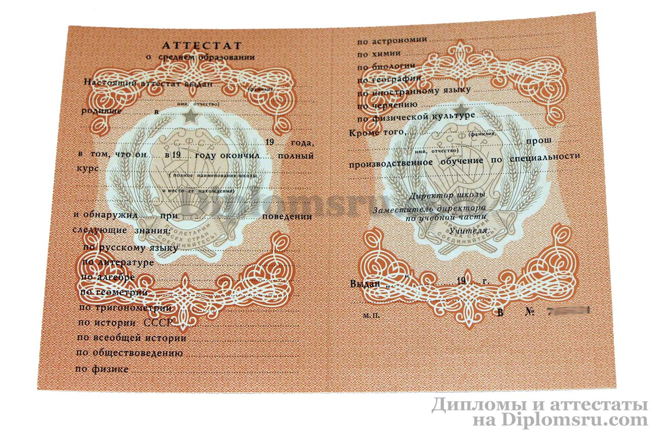 Аттестат школы за 11 класс, «Гознак» до 1994 года (образца СССР) |