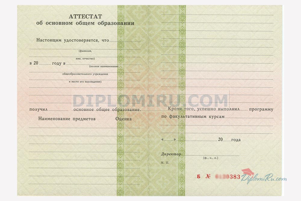 Аттестат школы за 9 класс, «Гознак» 2014-2026 годов (новый) |